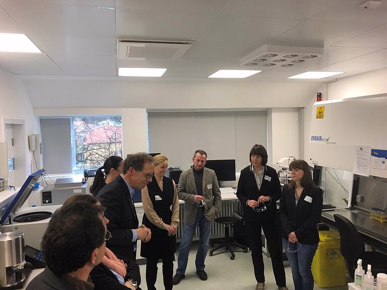 Bei einem Rundgang durch das Forschungsinstitut für Leder und Kunststoffbahnen FILK erhielten die Teilnehmer einen spannenden Einblick in die anwendungsorientierte Forschung der Einrichtung.