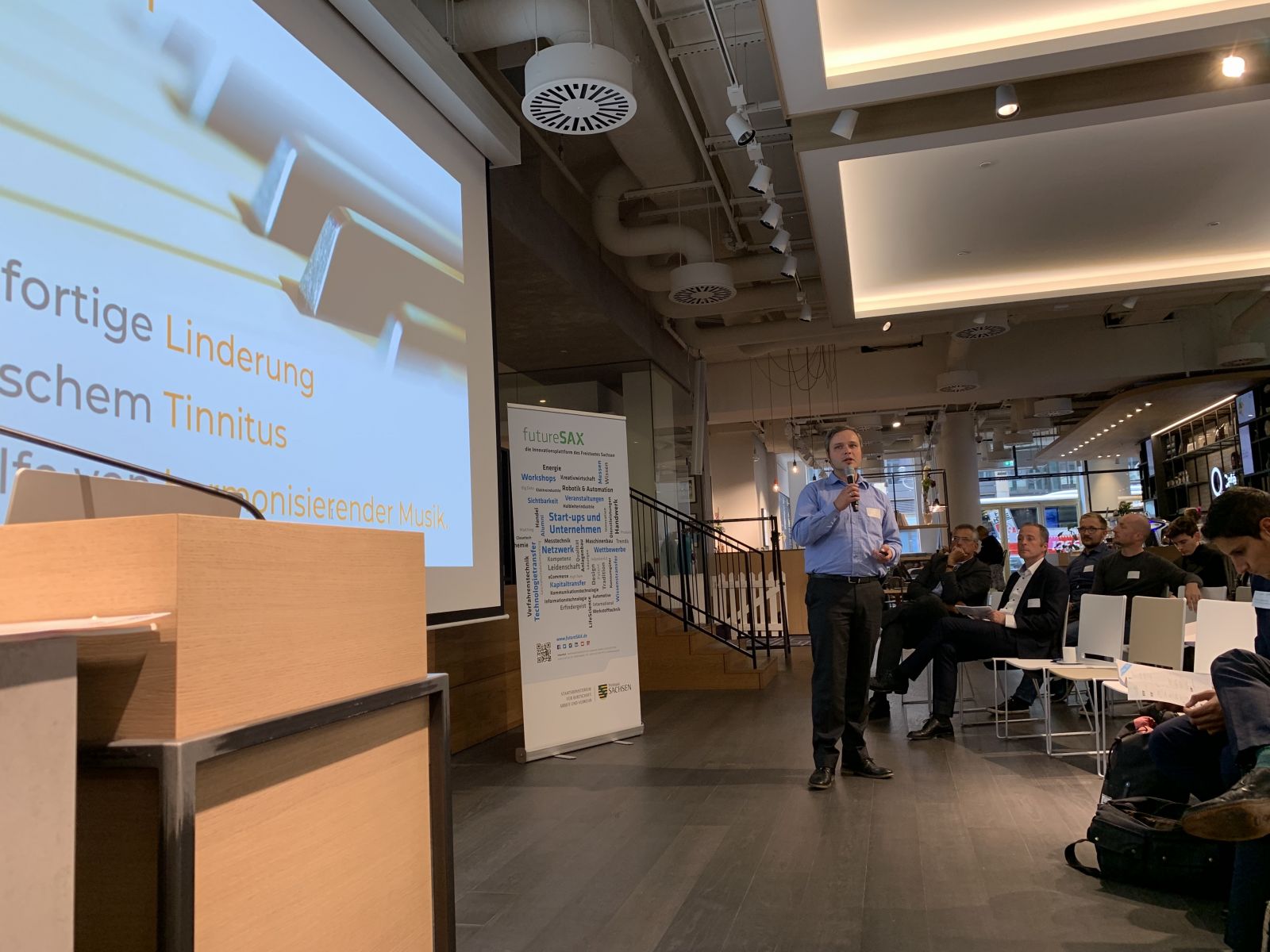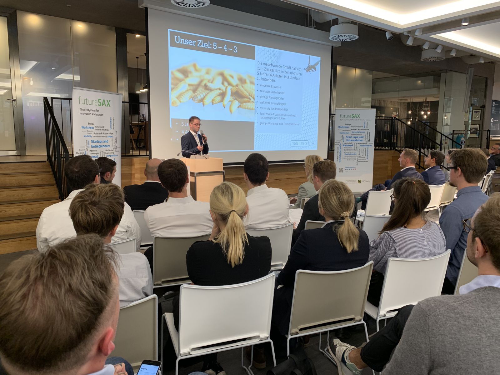 „Auf der futureSAX-Investoren Roadshow wurde heute ein guter Mix von Teams aus den verschiedensten Bereichen geboten, mit denen man sich neben den gut organisierten Panels effektiv austauschen konnte.“