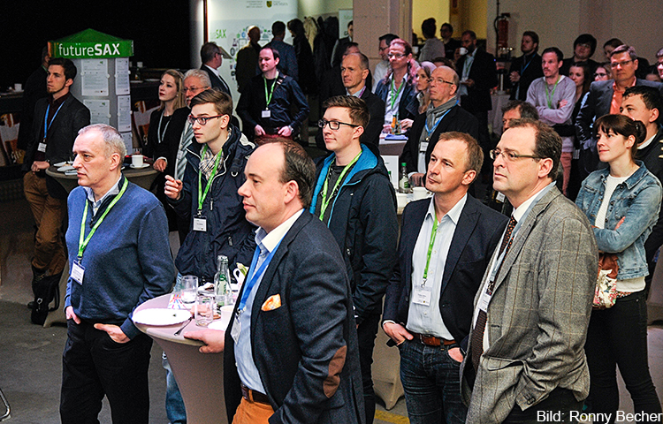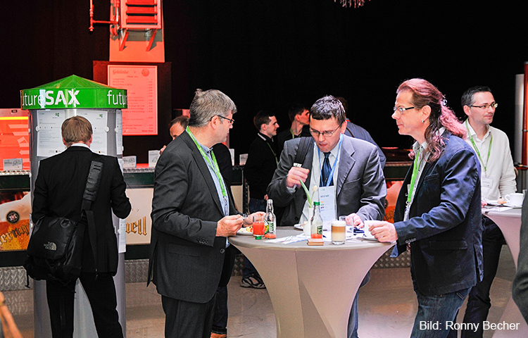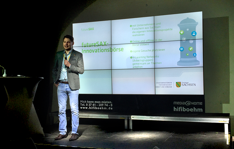 Bei der anschließenden futureSAX-Innovationsbörse nutzten Gründer, Unternehmer und Wissenschaftler die Gelegenheit ihre Kooperationsgesuche live zu präsentieren und freuten sich über eine Vielzahl an interessanten Gesprächen und die Aussicht auf eine zukünftige Zusammenarbeit. Besonders mutig zeigte sich das Gründer-Team „Yogo“ aus der Berufsakademie Plauen, die ganz spontan ihre Idee zum Gemüse-Joghurt auf der Bühne pitchten.