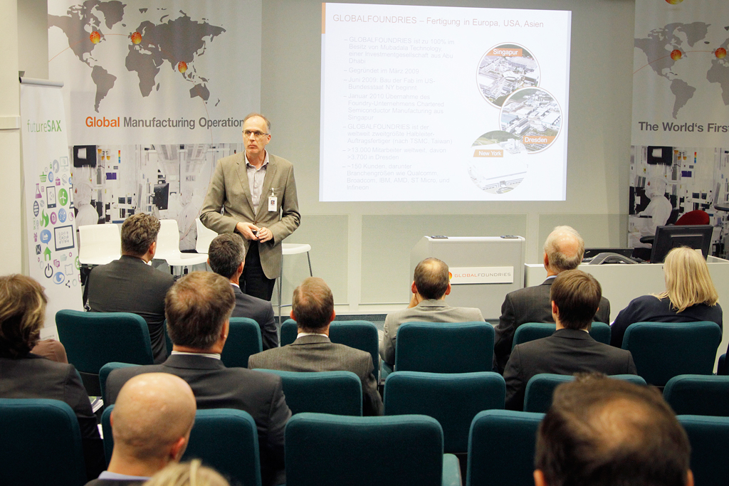 Die Veranstaltung zeigte anhand der Zusammenarbeit im Spitzencluster „Cool Silicon“ die Erfolgsfaktoren und Herausforderungen auf dem Weg zu einer übergreifenden Kooperation zwischen Wissenschaft und Unternehmen der Großindustrie und KMU auf. Die Teilnehmer besichtigten darüberhinaus die GLOBALFOUNDRIES Patent Wall, eine interaktive Datenbank, welche die neuesten und alle seit der Gründung von GLOBALFOUNDRIES 2009 erteilten Patente zeigt, und das Integrated Test Development Center (ITDC). In dem 230 m² großen Automatisierungslabor werden die Software und Hardware des Fab-Transportsystems getestet sowie Transportszenarien innerhalb des 52.000 m² großen Reinraums geplant und optimiert.