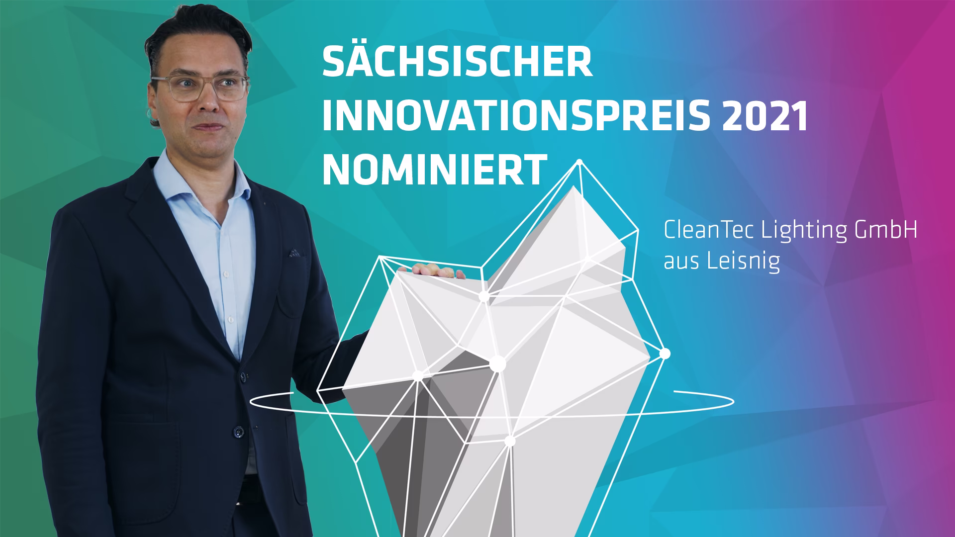 Das Luftentkeimungsgerät von Cleantec Lighting reduziert kontinuierlich die Konzentration von Viren, Keimen und Bakterien din der Luft. Das System arbeitet ohne Umweltbelastung oder Filterrisiken. Damit traf das Leisniger Unternehmen, das diese Produktinnovation seit 2015 entwickelte, für den Sächsischen Innovationspreis 2021 nominiert. Die Jury hebte besonders die hohe Effizienz, die intelligente Steuerung und die sichere Bauform hervor.