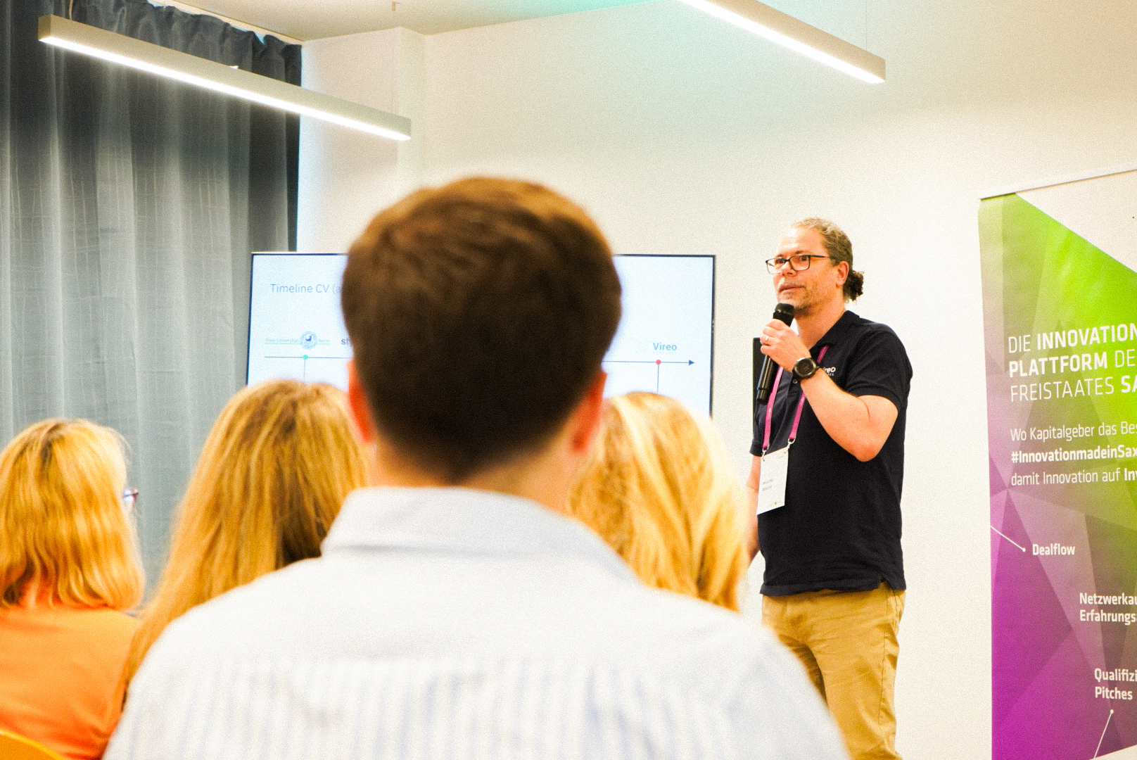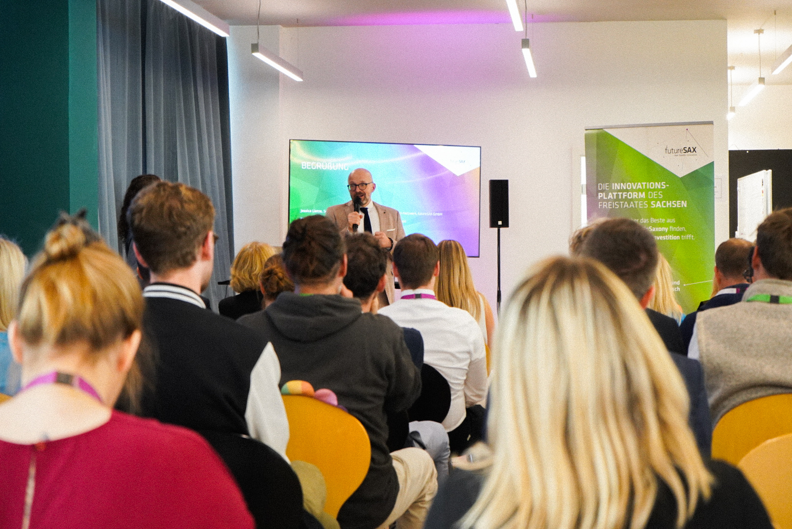 Die Veranstaltung wurde von Thomas Kralinski, Sächsischer Staatssekretär für Wirtschaft und Arbeit, und Jessica Lietze, Senior Projektmanagerin Kapitaltransfer & Investoren-Netzwerk bei futureSAX, eröffnet. Mischa Wetzel, Managing Partner bei Vireo Ventures aus Berlin, begeisterte das Publikum mit seiner Keynote über seinen Weg vom Kreativwirtschaft-Entrepreneur zum Energy-Tech VC. Anekdotisch gab er erstmalig Einblicke über die Verbindung seiner Musik-Vergangenheit in Hip-Hop und Rap mit seinem Einstieg und vielseitiger Erfahrung in der VC-Landschaft.