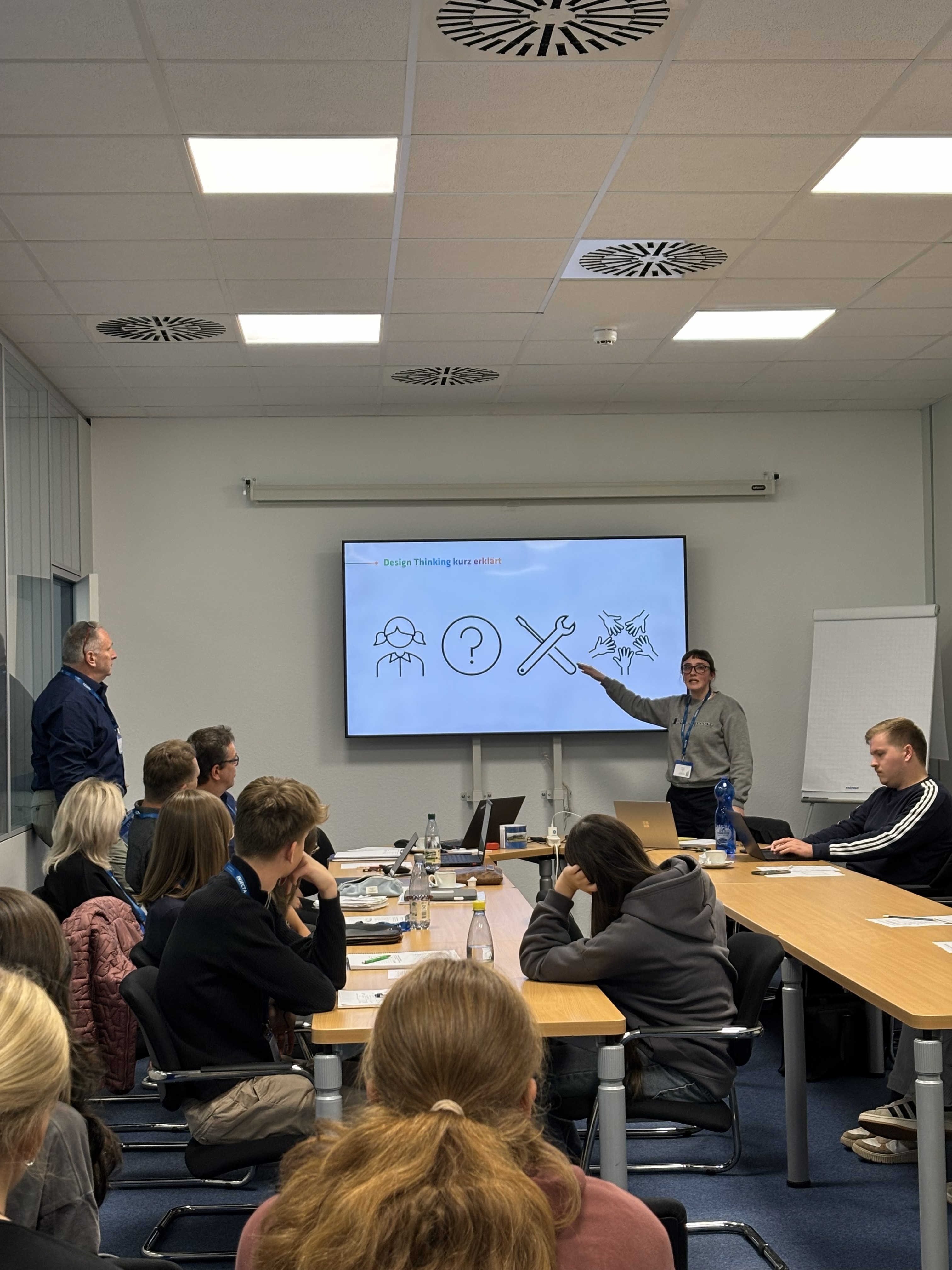 Im ersten Halbjahr stehen konkrete Aufgaben an: Analyse, Ideenentwicklung und erste Lösungsansätze. Über das Schuljahr hinweg folgen Projekttage, Präsentationen und ein Storybook, das die Ergebnisse dokumentiert und anderen Schulen und Unternehmen als Inspiration dient.