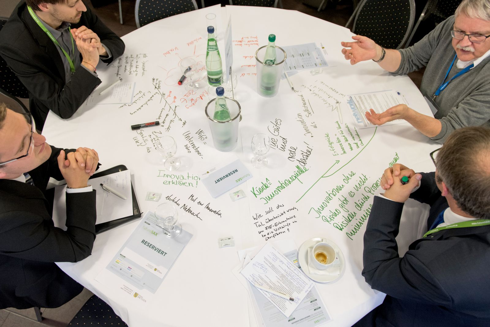 Der Startschuss der Veranstaltung fiel mit den Grußworten des Plauener Oberbürgermeisters Ralf Oberdorfer sowie der Ministerialdirigentin des Sächsischen Staatsministeriums für Wirtschaft, Arbeit und Verkehr, Barbara Meyer. Danach tauschten sich die Teilnehmer auf interaktive Art und Weise in Powertalks, Sessions und vor allem im Rahmen eines World-Cafés aus. Während des beliebten World-Cafés diskutierten die Teilnehmer lebhaft zu vier verschiedenen Teilaspekten rund um das Thema Innovationsmanagement. Die Ergebnisse des World Cafés können in der Bildergalerie eingesehen werden.