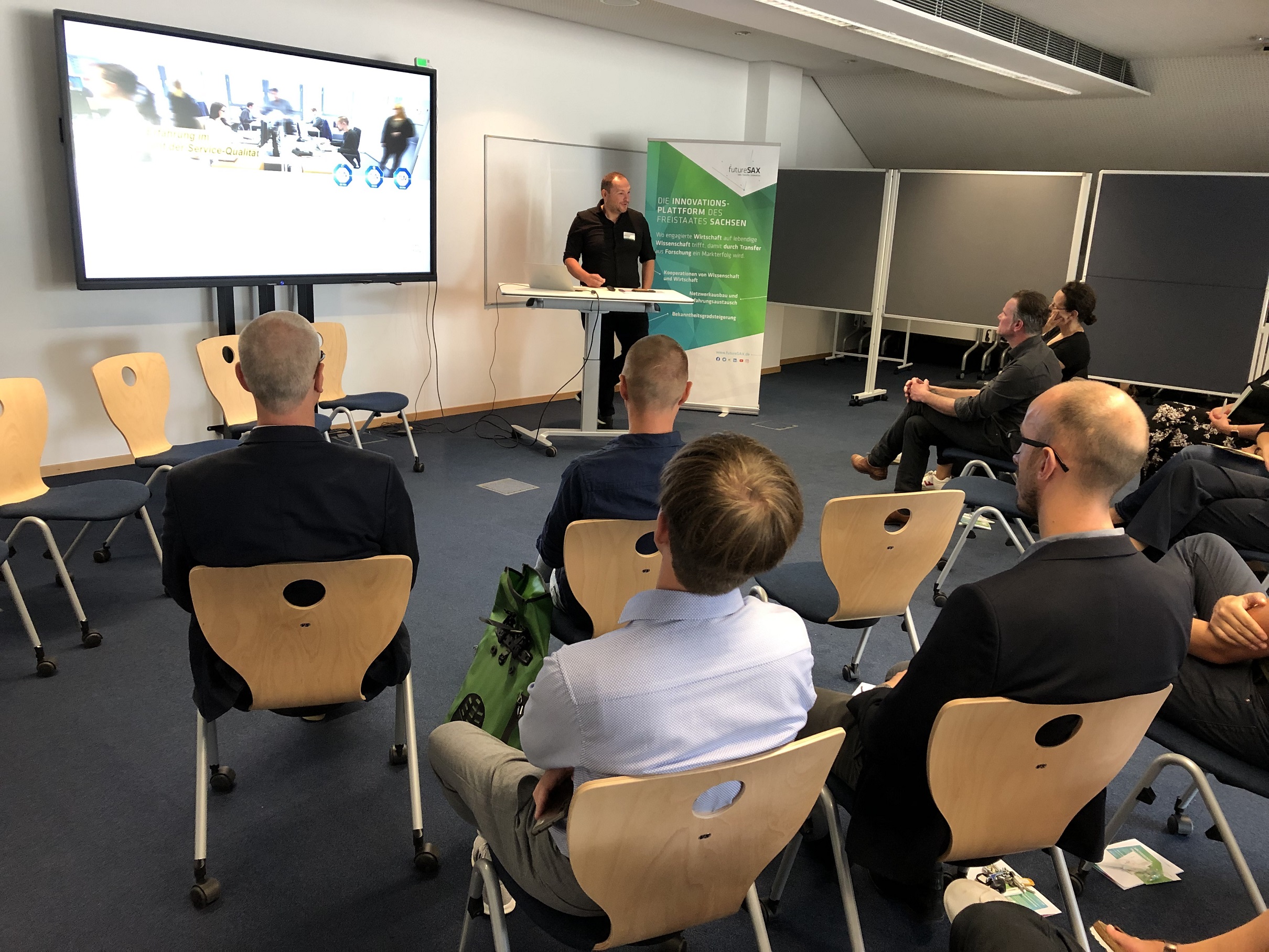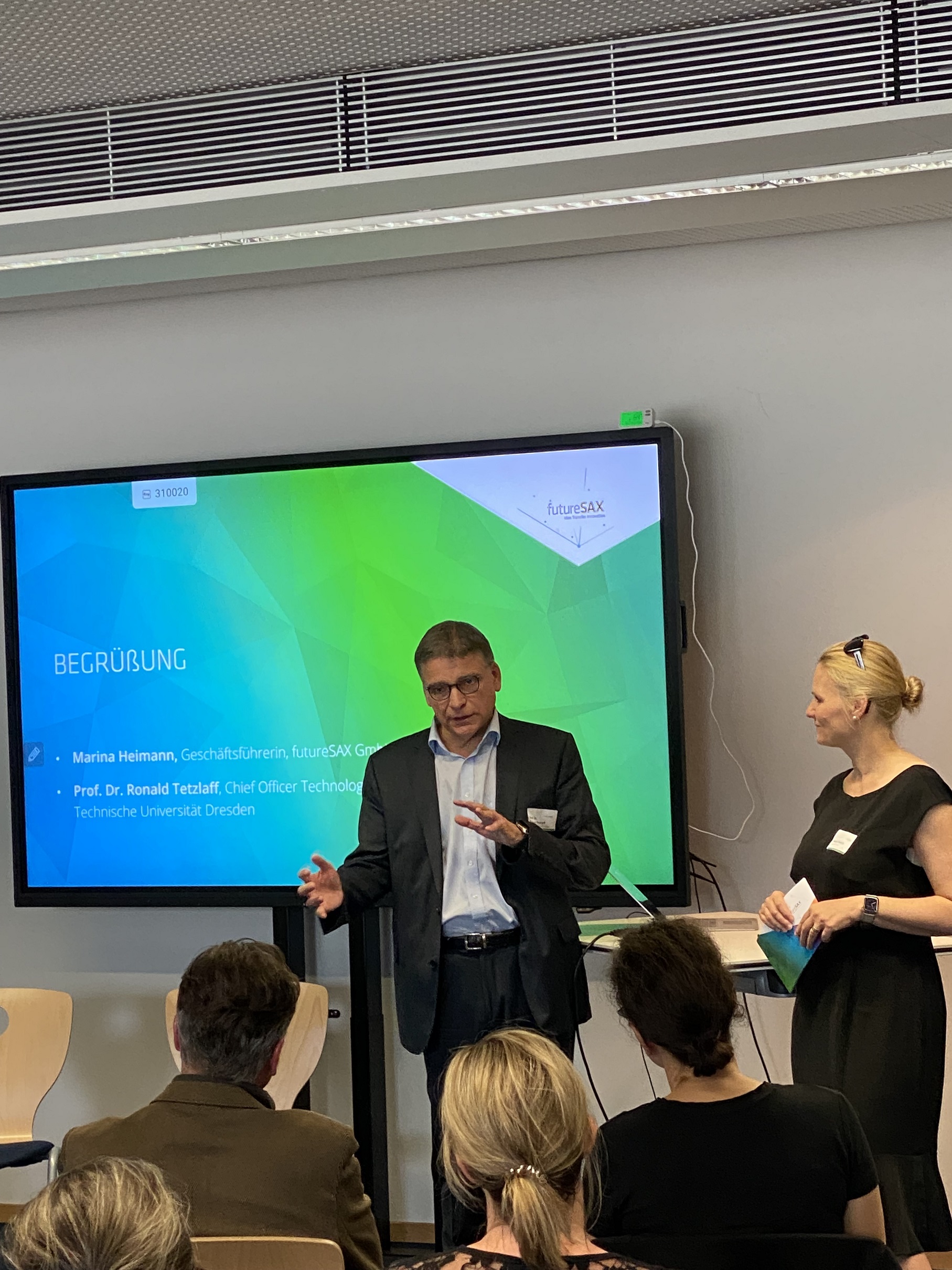 Einleitend begrüßte Marina Heimann, Geschäftsführerin von futureSAX, gemeinsam mit Prof. Dr. Ronald Tetzlaff, Chief Officer Technologietransfer und Internationalisierung an der Technischen Universität Dresden die über 20 Teilnehmenden. Professor Tetzlaff erläuterte die Bedeutung der Entwicklungen in Wissenschaft und Wirtschaft in Kooperationen mit externen Partnern.