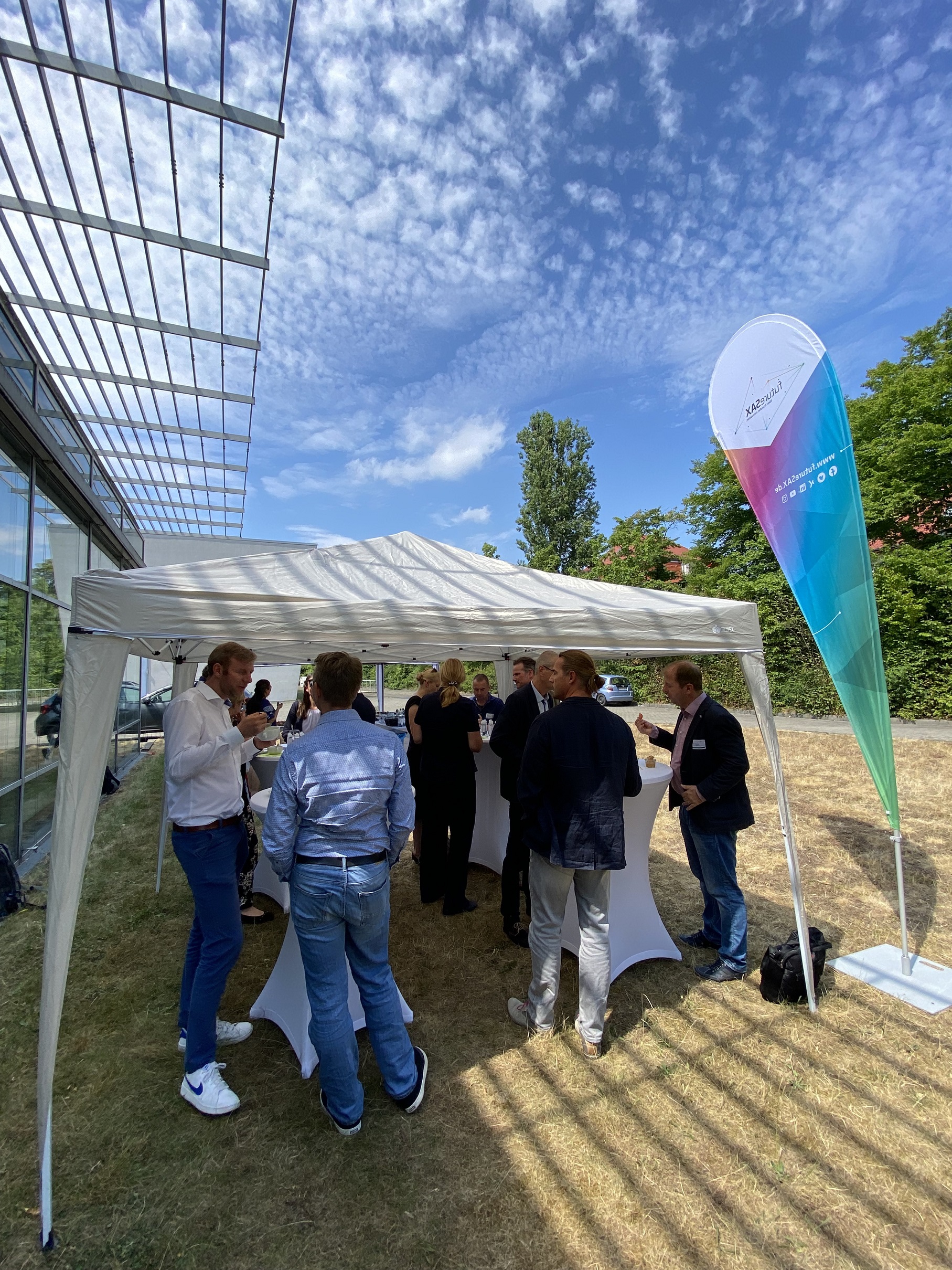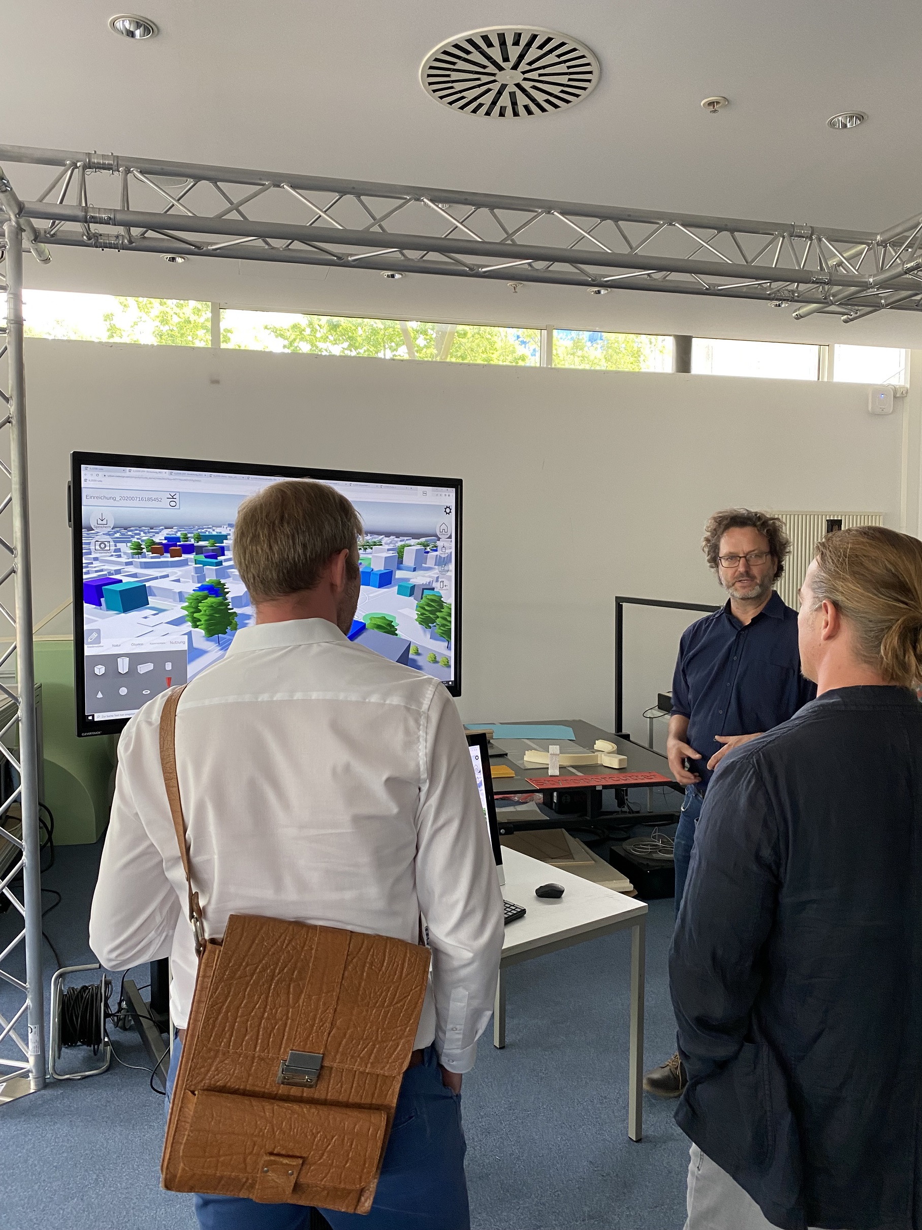 Nach einer Live Demo zur Veranschaulichung vom Co-Design von Stadträumen, tauschten sich die Teilnehmenden der Sächsischen Transfer Roadshow in einem kulinarisch begleiteten Get-together weiter rege aus und nutzten die Veranstaltung zum Netzwerken.
