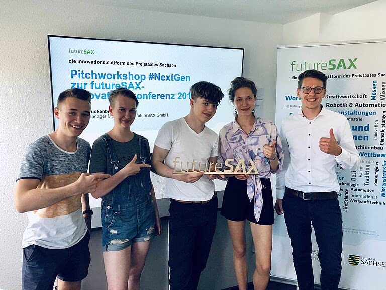 Neben den drei pitchenden Teams werden sieben weitere Jugendteams auf der futureSAX-Innovationskonferenz im Bereich Next Gen ausstellen. Zum einen werden drei Landessieger und drei weitere Teilnehmer des diesjährigen Landeswettbewerbs Jugend forscht Sachsen ihre Forschungsergebnisse präsentieren. Zum anderen werden vier Teilnehmer des Businessplan-Wettbewerbs von Startup Teens aus Sachsen ihre Geschäftsidee präsentieren und diese mit zum Bundesfinale am 28. Juni 2019 nach Berlin nehmen.