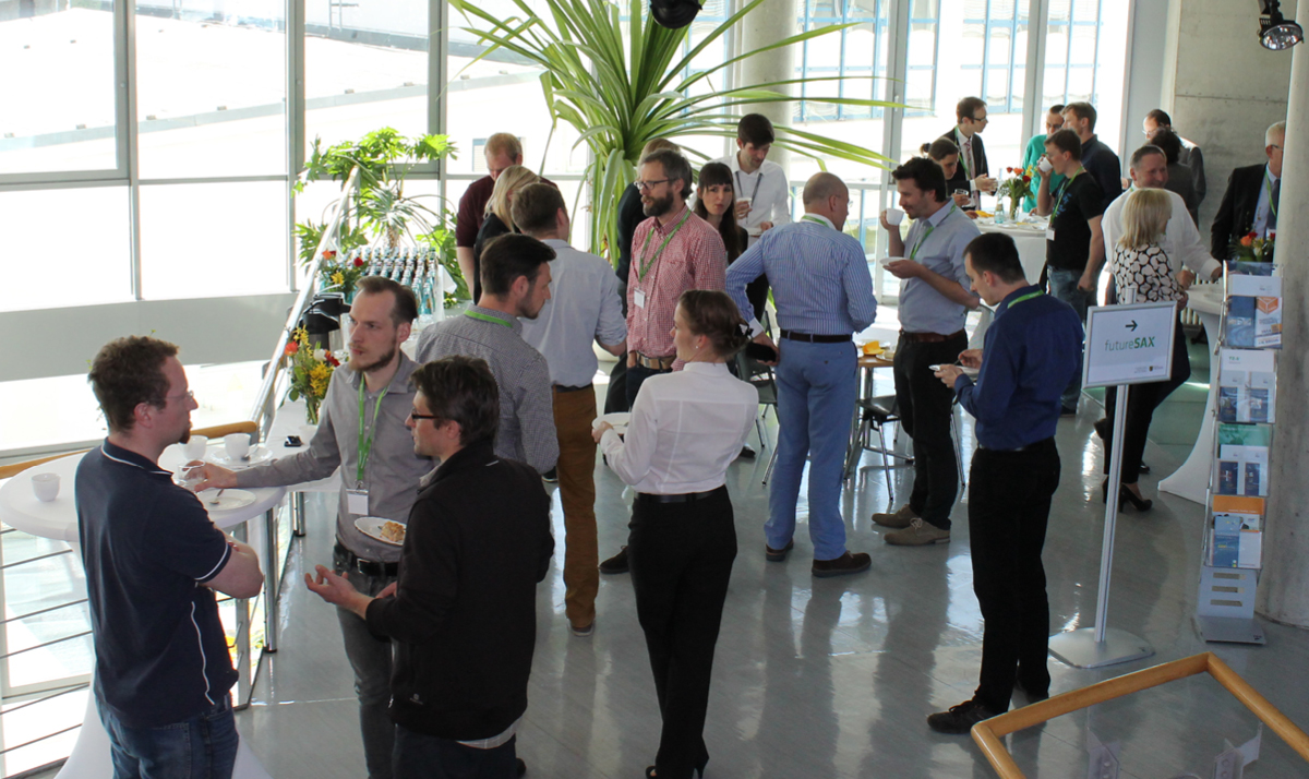 Kleine Pausen während der Workshops nutzten die Unternehmer und Gründer, um miteinander ins Gespräch zu kommen. futureSAX-Projektleiterin Marina Heimann ist zufrieden: “Hier treffen die etablierten Unternehmer auf die nächste Generation an Gründern, ein Austausch von dem nicht nur die Jungunternehmer profitieren. Da die gesamte Bandbreite der sächsischen Unternehmerwelt vertreten ist und man das Engagement der Nominierten für ihre Projekte wirklich spüren kann, ergibt sich daraus eine ganz besondere Atmosphäre.“