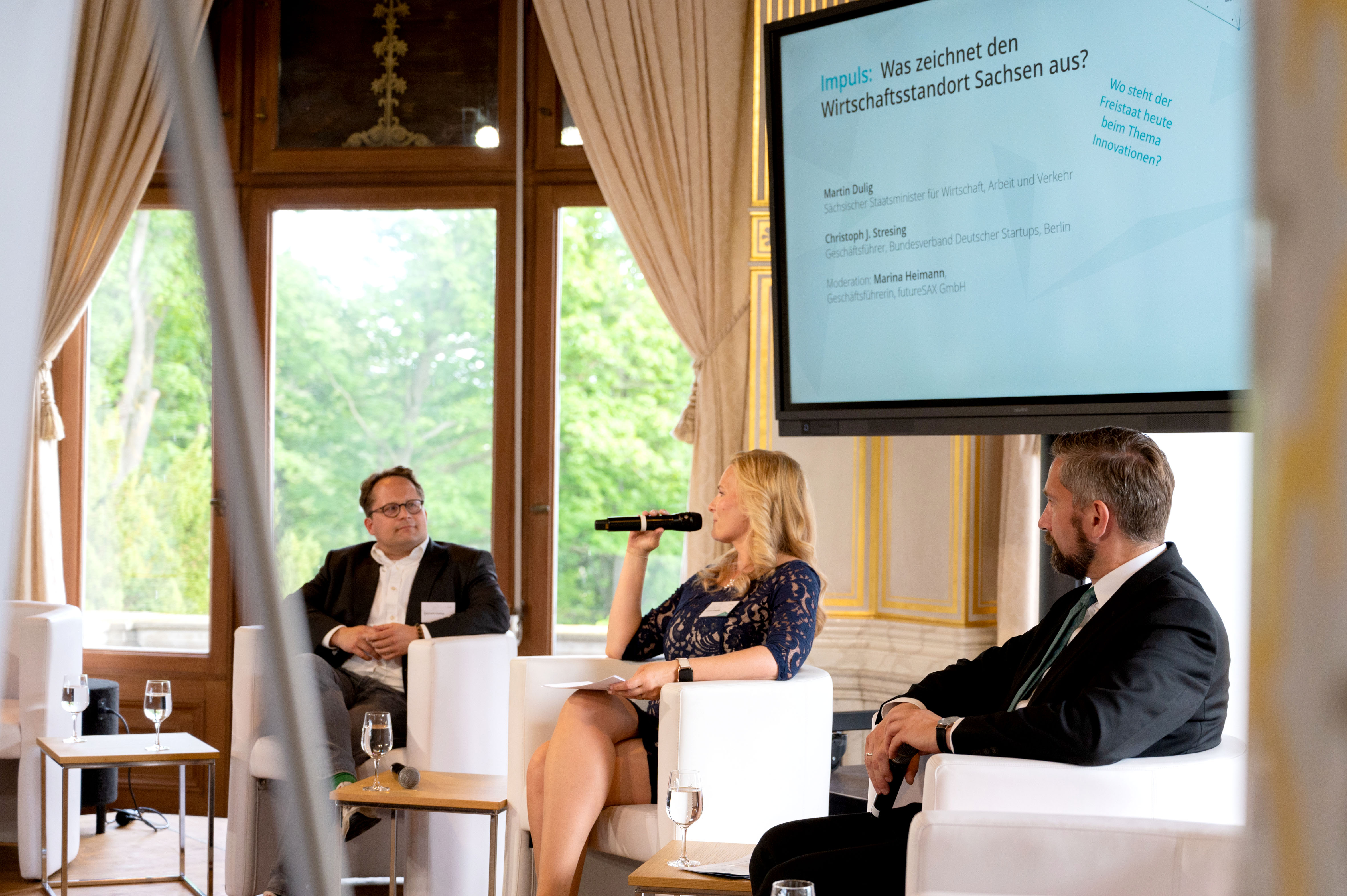Moderiert durch futureSAX-Geschäftsführerin Marina Heimann gaben beide Referenten vielfältige Impulse für Investitionen in sächsische Wachstumsunternehmen. Vor allem eine erhöhte Sichtbarkeit für die erfolgreichen und eine noch bessere Verbindung zu Kapitalgebenden wurden dabei als Schritte für die Zukunft identifiziert.