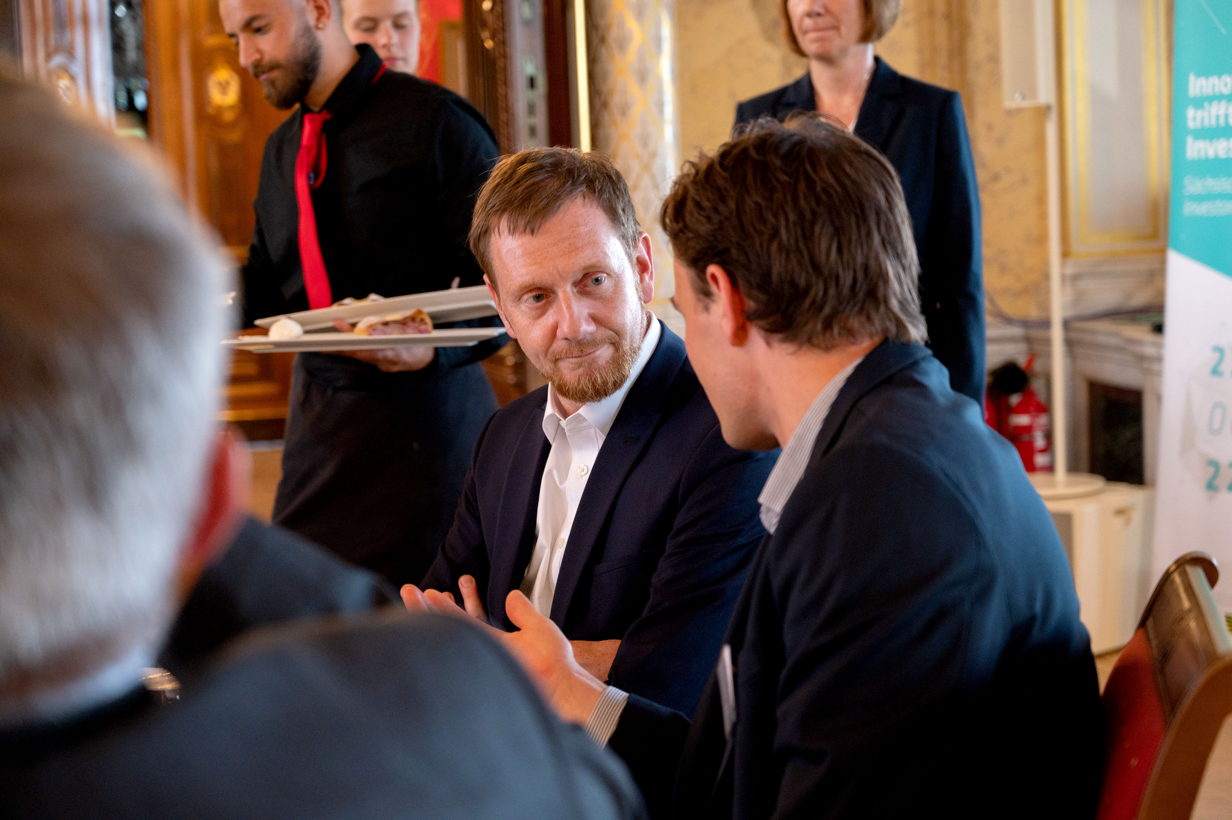 Der Sächsische Investorentag bot überregionalen Finanzinvestoren einen besonderen Einblick und Vernetzung mit führenden Köpfen der sächsischen Innovationslandschaft. Die Teilnehmenden erfuhren von Ministerpräsident Kretschmer und Wirtschaftsminister Dulig sowie anhand ausgewählter Best-Practice Beispiele, wieso Sachsen als Innovationsstandort für Investitionen in Wachstumsunternehmen attraktiv ist.