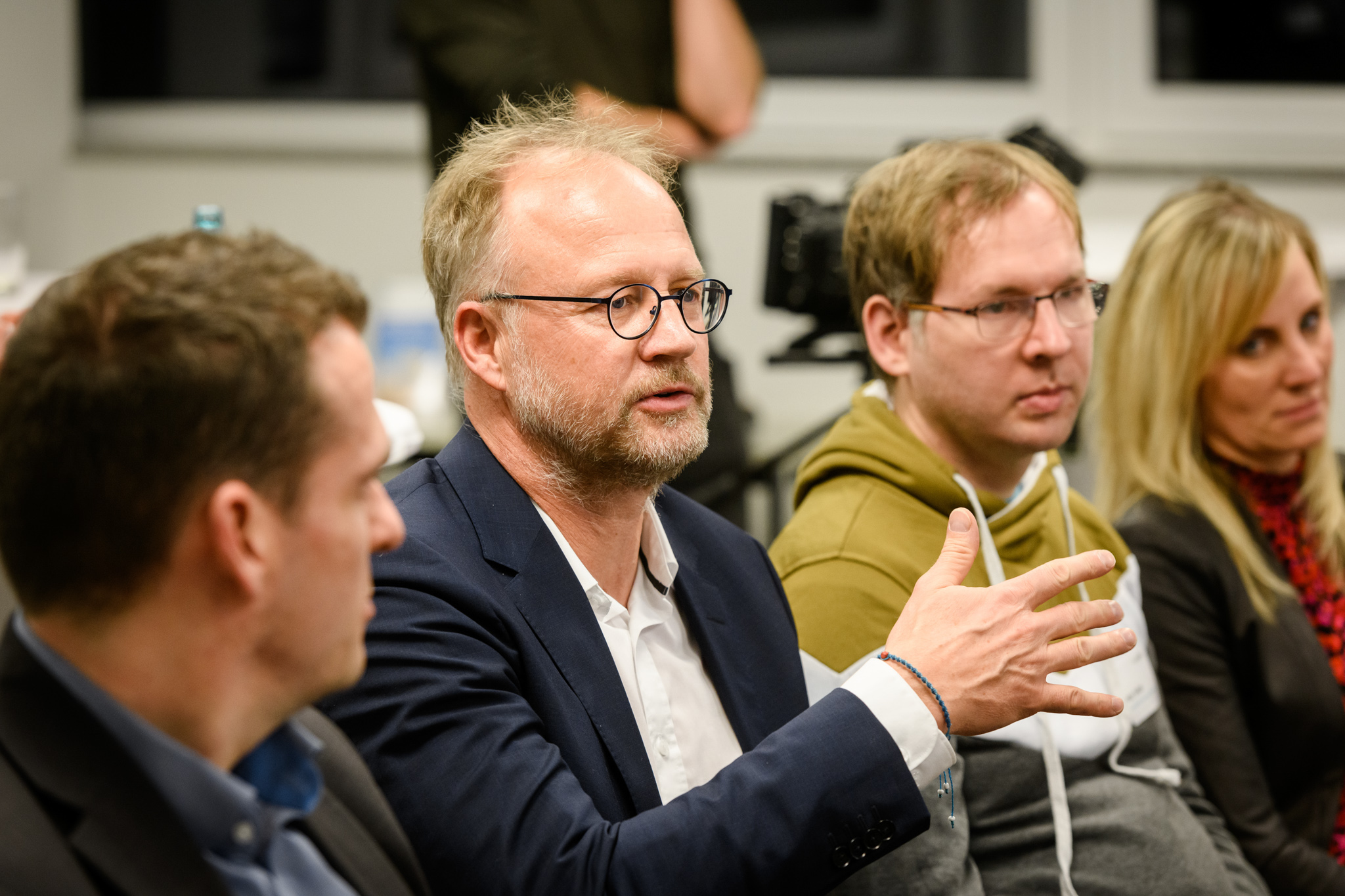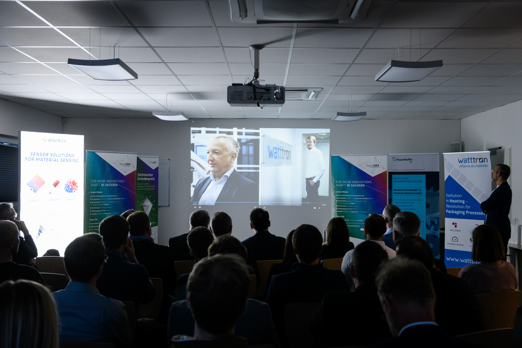 Schwerpunkt bildeten zwei Impulsvorträge, welche über die Motivation und Erfahrungen aus dem Weg vom Ausgründungsprojekt zum Unternehmen berichteten. Prof. Dr.-Ing. Jens-Peter Majschak erläuterte seine Motivation und die Herangehensweise am Fraunhofer IVV bei der strukturierten Unterstützung von Transferaktivitäten und Ausgründungsvorhaben. In der Etablierung von jungen Unternehmen am Standort sieht er nicht nur einen vielfachen Mehrwert für die Forschungseinrichtung sondern für auch die sächsische Wirtschaft.