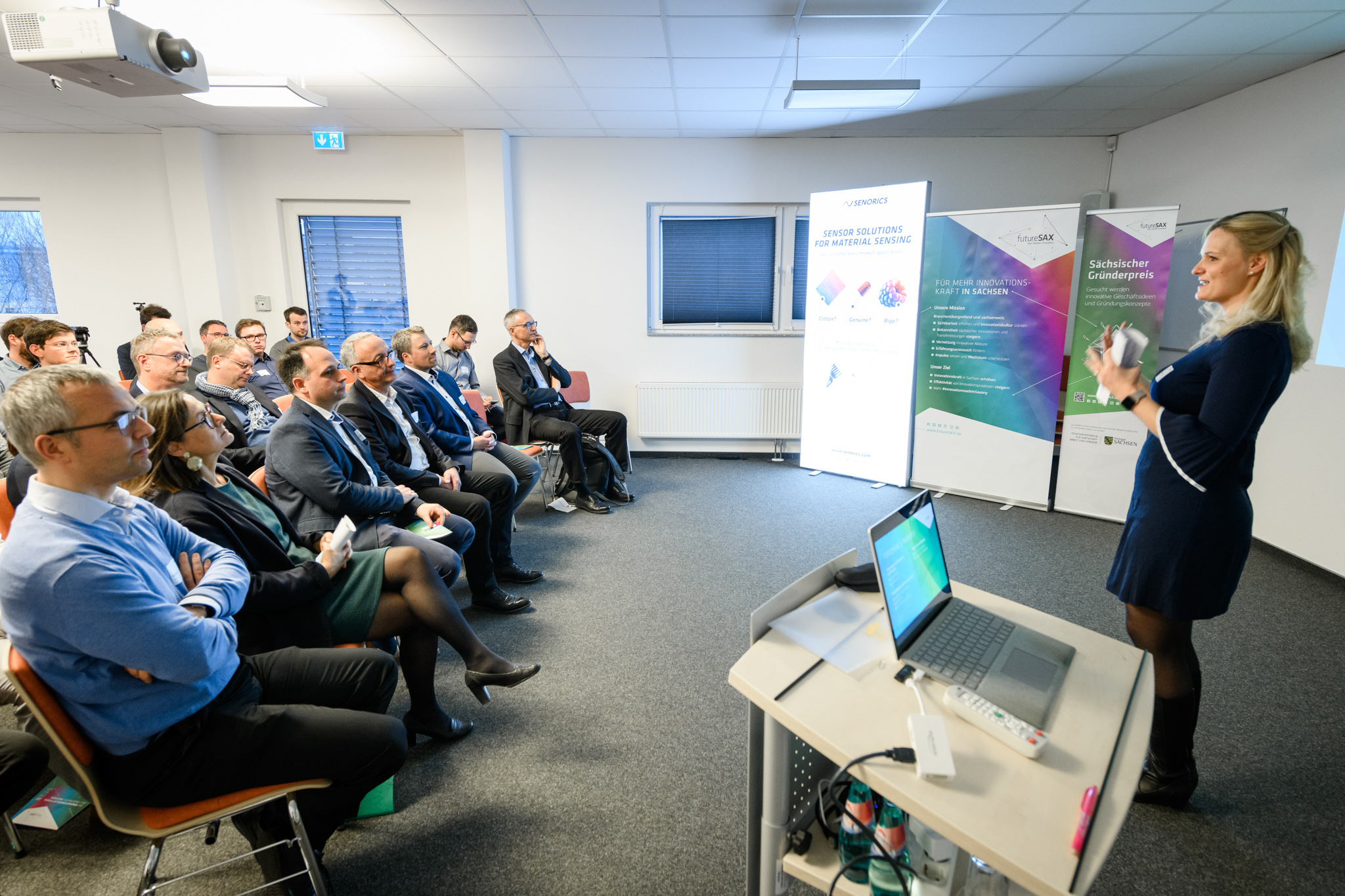 In der Begrüßung stellte Marina Heimann, Geschäftsführerin der futureSAX GmbH kurz das Unterstützungsangebot von futureSAX im Bereich Transfer und Ausgründungen vor. Insbesondere der Sächsische Gründerpreis und das Sächsische Mentoring-Netzwerk bieten für Hightech-Ausgründungen eine Chance, ihr Geschäftsmodell weiter zu entwickeln, Wachstumsprozesse zu unterstützen und Kooperationen mit mittelständischen Unternehmen anzubahnen.