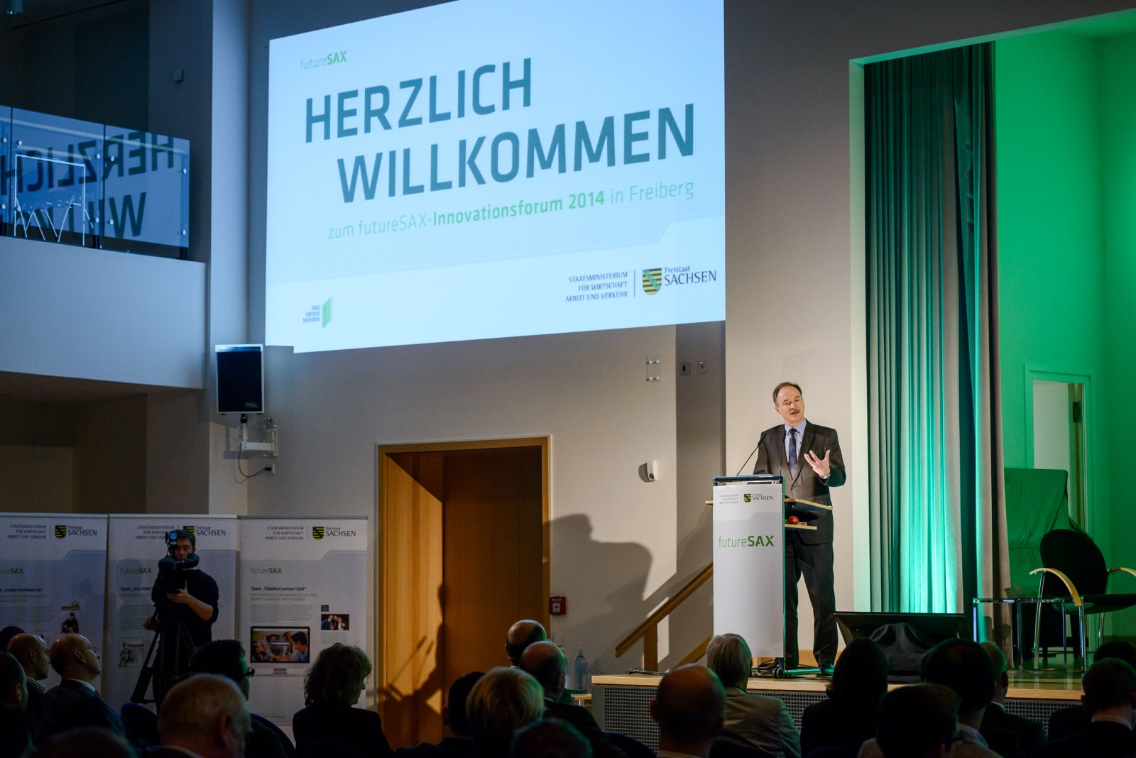 Rund 150 Vertreter aus Wirtschaft, Wissenschaft, Forschung und Politik trafen sich am 9. Oktober 2014 in der TU Bergakademie Freiberg zum futureSAX-Innovationsforum. Im Rahmen des Forums, das unter dem Motto „Zukunft beginnt mit Innovation“ stand, wurde auch der Startschuss für den Sächsischen Staatspreis für Innovation 2015 und den futureSAX-Ideenwettbewerb 2015 gegeben.